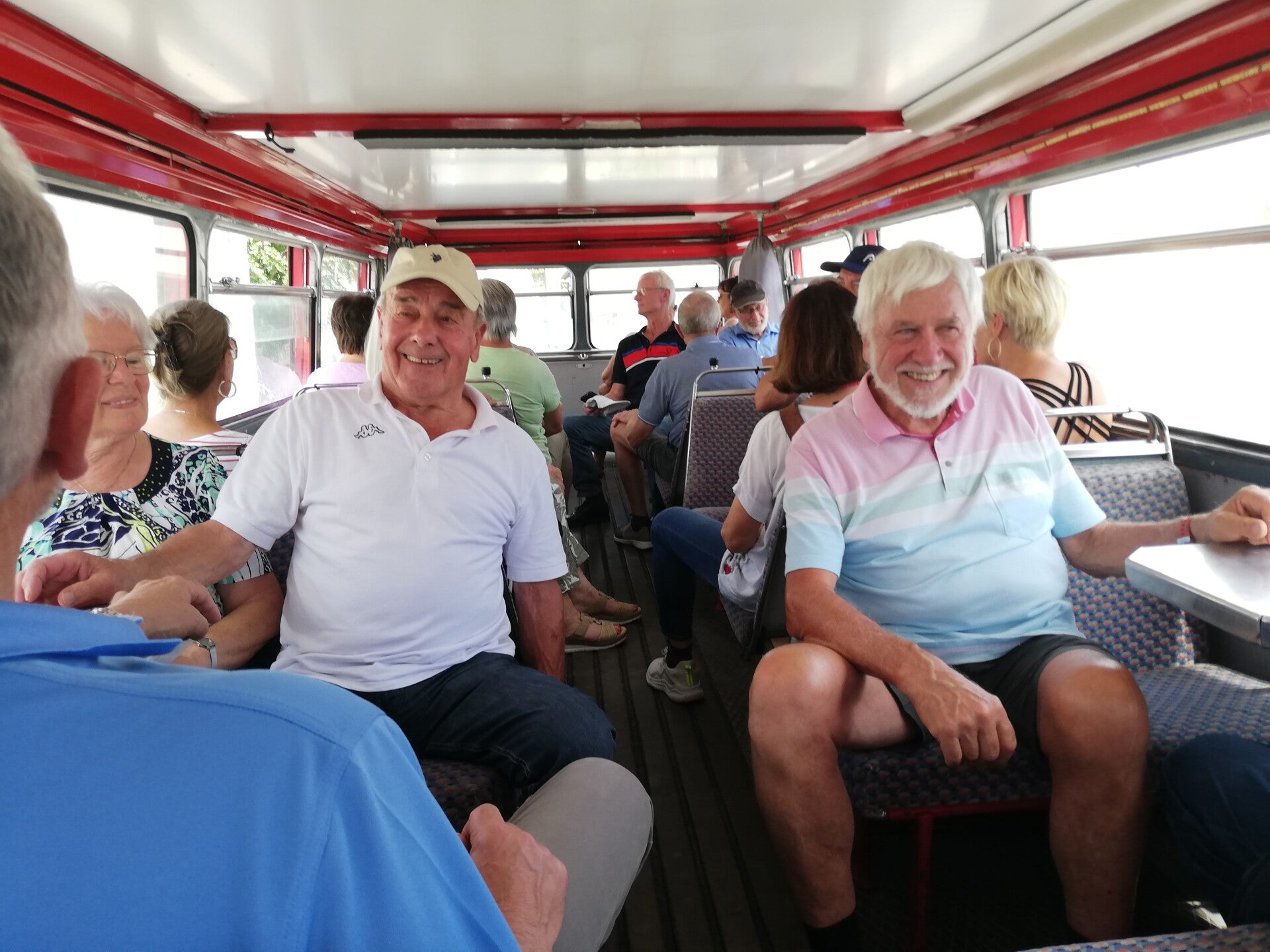 Unser Freund Hans Kernecker, der den ganzen Sommer über Festspielgäste herum schaffiert holt uns mit seinem Oltimerbus vom Bahnhof ab.