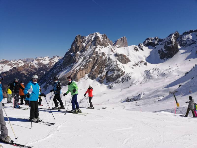 Nun ja, wir hatten schon besseres Wetter gesehen. Das Fassatal, sowie die Marmolada sind diese Woche meist wolkenverhangen, im Nebel eingehüllt. Petrus und die Wetter App hatten den Skifahrern diese Woche wenig Sonnenstunden angekündigt. Trotzdem sollte unserer Gruppe "Apfelstrudel" der Schmäh nicht ausgehen. Es war lustig, fesch, aber auch fordernd. Vor allem war man mit etwas Kondition gut beraten.